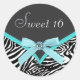 Elegant teal blue zebra sweet sixteen stickers. This pretty teal blue zebra sticker is easily customised for your event by simply choosing the "Customise it!" button to begin adding your event details, font style, font size & colour, and wording. Please note - all of the stickers, cards and invitation designs you will find on Zazzle are printed graphics with no actual jewels, bows, raised, embossed, or added parts or pieces.