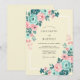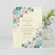This design features a lush arrangement of watercolor roses and ranunculus in shades of soft blush pink and deep teal. Set against a cream backdrop, the painterly floral clusters create a romantic and timeless atmosphere perfect for a springtime event. Deep emerald and teal foliage adds a touch of contrast to the delicate pastel blooms.