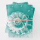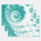 A set of three decorative 19x29” wrapping paper sheets featuring a blushing teal blue monochrome spiral fractal print