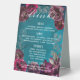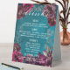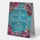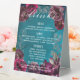 Swash font calligraphy bar menu with white lettering on Aqua Teal Bordeaux jewel tone wedding drinks bar sign.