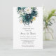 Teal Botanical Floral Peony Engagement Party Invitation