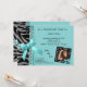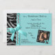 Teal ribbon and silver pearls with black and silver zebra stripes decorate this contemporary party invitation. Upload your own photo to the funky zebra frame to further personalise the look. There is plenty of customisable text on this trendy invitation to add your party information. We also have this design in various colours. Coordinating colours on the back of this plush invitation complete the look and makes this premium design perfect for almost any occasion.