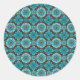 Teal Brown Abstract Tile Pattern Classic Round Sticker