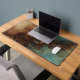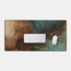 A sophisticated desk mat featuring flowing teal and deep brown marble textures highlighted with elegant gold veins. This artistic abstract design blends earthy tones with modern luxury, creating a stylish and calming workspace for your desk setup.