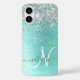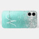 Teal Brushed Metal Silver Glitter Monogram Name Case-Mate iPhone Case