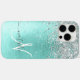 Teal Brushed Metal Silver Glitter Monogram Name Case-Mate iPhone Case