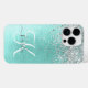 Teal Brushed Metal Silver Glitter Monogram Name iPhone Case