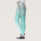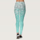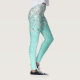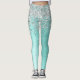 Trendy chic leggings design featuring pretty silver sparkling glitter on a teal brushed metallic background.