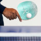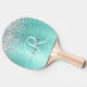Easily personalise this trendy chic ping pong paddle design featuring pretty silver sparkling glitter on a teal brushed metallic background.