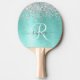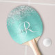 Teal Brushed Metal Silver Glitter Monogram Name Ping Pong Paddle