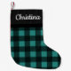 Turquoise blue-green Buffalo check pattern printed sweater pattern background and your family member, pet, kids or grown-up's name. Custom personalised Christmas Holiday Stocking! Old antique country vintage style outdoorsman woodland theme pattern, with script typography Merry Christmas, adorable vintage Country southern style holiday theme. Customise one for every family member!