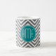 Teal Charcoal Chevrons Custom Monogram Coffee Mug