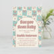 Teal Chequerboard Seashell Bow Baby Shower Invitation