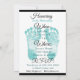 Personalise this invitation by adding your information onto this cute teal blue aqua and black coloured baby boy baby shower invitation with baby footprints in the customise area.