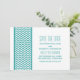 Chic and modern Chevron Border Save the Date Announcement featuring a simple chevron pattern border in turquoise and white. This stylish design will set the tone for an elegant wedding. Easy to customise, simply add your wedding details in the text fields provided. Click "Customise It" to find more personalisation options.