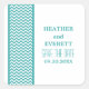 Chic and modern Chevron Border Save the Date Stickers featuring a simple chevron pattern border in turquoise and white. This stylish design will set the tone for an elegant wedding. Easy to customise, simply add your wedding details in the text fields provided. Click "Customise It" to find more personalisation options.
