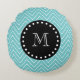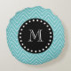 Teal Chevron Pattern | Black Monogram Round Cushion