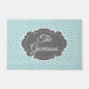 Add a welcome feeling to your front door with a Teal Chevron Personalised Doormat. Doormat design features a teal chevron background and an ornate grey tag to personalise with your name and monogram. Additional items available with this design as well. Please contact me directly for assistance with personalisation.