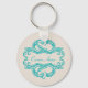 Elegant and sophisticated Chic Damask Keychain featuring a soft beige background and a stylish damask flourish embellishment in turquoise. This modern design is easy to customize with your own text. Click "Customize It" to find more personalization options.