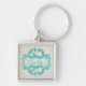 Elegant and sophisticated Chic Damask Premium Keychain featuring a soft beige background and a stylish damask flourish embellishment in turquoise. This modern design is easy to customise with your own text. Click "Customise It" to find more personalisation options.