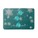 Add a festive touch to your bath decor this holiday season with a Teal Christmas Ornaments Bath Mat.  Bath mat design features a trio of hanging Christmas ornaments with falling snowflakes and a dark teal background. Additional gift and holiday items available with this design as well.