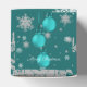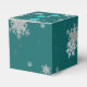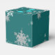 Package gift favours this holiday season with a Teal Christmas Ornaments Favour Box. Favour box design features a trio of hanging Christmas ornaments with falling snowflakes and a dark teal background. Additional gift and holiday items available with this design as well.