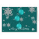 Spread Christmas cheer this holiday season with a Teal Christmas Ornaments Holiday Greeting Card. Greeting card design features a trio of hanging Christmas ornaments with falling snowflakes and a dark teal background. Additional gift and holiday items available with this design as well.