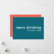 Simple, stylish "merry christmas" quote greeting card with modern typography in white on a steel blue background in a minimalist 'scandi' scandinavian design style. The card can be easily personalised with your own holiday greeting, family name and year to make a truly bespoke christmas holiday card for the festive season! The back of the card is in a complementary tomato coral red for a fun festive feel.