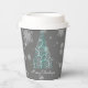 Sip your favourite Christmas time beverages with a festive set of Teal Christmas Tree and Snowflakes Paper Cups. Paper cup design features a vibrant artistic Christmas tree with falling snowflakes and a dark grey background. Additional gift and holiday items available with this design as well.