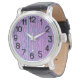 This men's watch has an art deco design that looks like likes on a circuit board. The lines are running vertically in teal on a field of purple. Want a different colour? Message me.