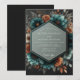 This design features a dramatic and opulent aesthetic, perfect for a sophisticated seasonal event. Rich teal dahlias are paired with burnt orange roses against a moody charcoal backdrop. The painterly style creates a lush botanical atmosphere with deep tones and warm copper accents.