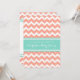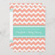 Personalised baby shower invitations in elegant and modern bright turquoise aqua light blue, peach orange pink and white fun chevron zigzags pattern. Customisable with your text, contact us to request a colour change.