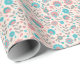 Teal & Coral Folk Art Floral Pattern Wrapping Paper