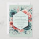 Embrace a modern romance with this artistic floral design, featuring a striking palette of deep teal, vibrant coral, and soft peach. Lush, painterly peonies and delicate smaller blossoms are arranged beautifully against a pale mint background. The watercolor aesthetic creates a sophisticated and dreamy atmosphere for your special day.