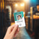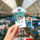 Personalise these vertical teal turquoise employee badges with an employee photo, company logo, bar code, employee id and name.