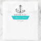 Cute Chandelier Wedding Favour Thank You in teal blue and white. Custom Bride Groom Date Wedding Thank You Favour Sticker. Customise with your names, date and wedding colours.
