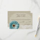 Vintage inspired teal daisy over white lace and burlap. RSVP card to compliment invitations.