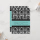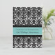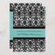 25th wedding anniversary party invitation card in elegant turquoise blue, black and white modern floral damask pattern, delicate and contemporary. Customisable with your party details.