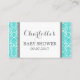 Cute baby shower please bring a book insert cards in dark charcoal grey, white and turquoise teal blue floral vintage damask pattern. Add a card to each invitation you send out to start a library for baby.