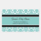 Baby shower thank you favour tag sticker in elegant light turquoise blue, black and white classic floral damask pattern. Customisable with your own text, contact us for a colour change. The perfect way to decorate your baby shower favours and thank your guests for being a part of your special day.