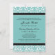 Custom Bat Mitzvah party invitations in elegant turquoise blue, black and white classic floral damask pattern. Add your name and party details for a unique and stylish Bat Mitzvah party invitation.