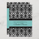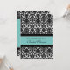 Bridal shower invitations in elegant turquoise blue, black and white classic floral damask pattern, elegant and feminine, customisable with your shower details. Also available in thank you cards and invitations for the bridal party.