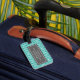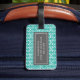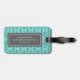 Elegant and chic custom monogram luggage tag in contemporary turquoise peacock blue, grey and white classic floral damask vintage pattern. Customise with your initials and your contact information.