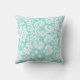 Elegant and modern turquoise aqua blue and white classic floral damask vintage pattern monogrammed decorative throw pillow. Fully customisable, add your name or other text for a truly unique home decor item.