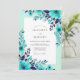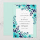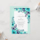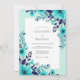 This design features a vibrant arrangement of watercolor florals in shades of teal, aqua, and deep navy blue. Delicate leaf sprigs and blossoms create a fresh, seasonal aesthetic perfect for a summer event. The contrast between the bright mint tones and the dark indigo petals offers a sophisticated botanical look.