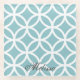 Protect your tabletops or furniture surfaces with a Teal Diamond Pattern Personalised Glass Coaster. Coaster design features a modern diamond and circle pattern and area you can personalise with your name against a light teal background. Additional gifts available with this design as well as a variety of colours.
