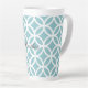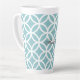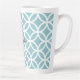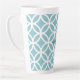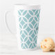 Enjoy your morning coffee or latte with a Teal Diamond Pattern Personalised Latte Mug. Latte mug design features a modern diamond and circle pattern and area you can personalise with your name against a light teal background.Additional gifts available with this design as well as a variety of colours.