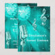 Personalised, elegant custom Sweet Sixteen birthday party invitations for girls. Beautiful teal and white double sided Sweet Sixteen invites for teenage girls with a funky retro disco mirror ball, glamourous printed image rhinestone glitter, sequins, jewels sparkles glittery musical notes / music notes and a cool teal colour vintage retro microphone on a vibrant teal turquoise blue lights and sparkles background. Chic, classy, cute, girly, modern invitations with trendy, fashionable colours. These groovy, stylish, sophisticated, pretty retro mic disco invites are decorated / printed on both sides. Perfect invitations for a dinner dance dancing or Karaoke singing event. PLEASE NOTE: All invitations on Zazzle have flat printed images. If you need any assistance customising your product please contact me through my store and I will be happy to help.