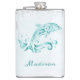 Enjoy your favourite alcoholic beverages anytime with a Teal Dolphin Vinyl Wrapped Flask. Flask design features a vibrant metallic dolphin against a muted seascape adorned elegant scrolls. Additional gift items available with this design as well.