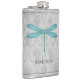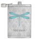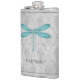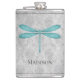 Enjoy your favourite alcoholic beverages anytime with a Teal Dragonfly Damask Vinyl Wrapped Flask. Flask design features a colourful dragonfly against an elegant vintage grey damask pattern. Additional gift items available with this design as well.